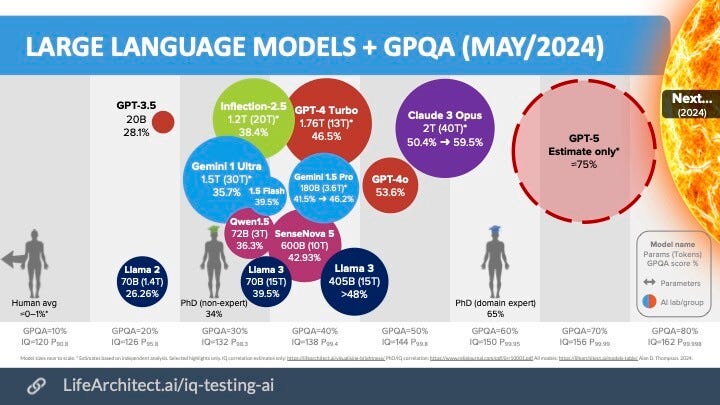 GPT-5 (Estimate): Projected to achieve around 75%, GPT-5 is expected to significantly surpass its predecessors, marking a milestone in AI capabilities.